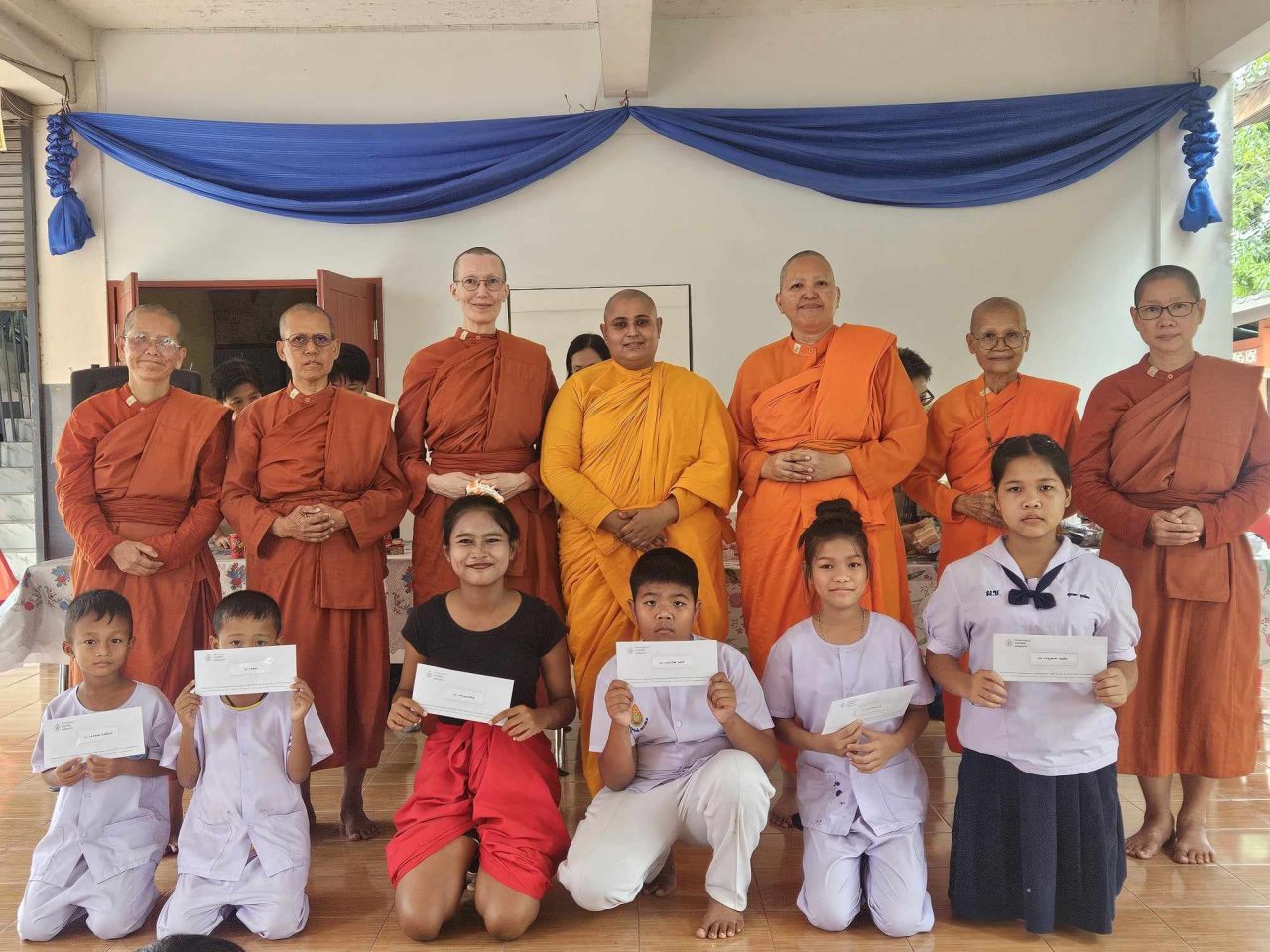 The monastics and the volunteers from Bodhi Asa returned to Wat Pai Charoen School to hand out scholarships and to participate in the festivities. Everyone had a nice time! This is part of our ongoing Bhikkhuni Sangha Project: Responsibility for the Development of Quality of Thai Youth. We thank everyone who participated! Sadhu!
