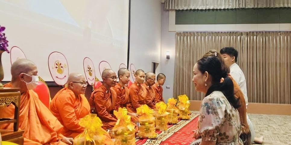 Seven bhikkhuni sangha members were invited to give the 5 precepts to the students at the Faculty of Humanities and Social Sciences at Nakhon Pathom Rajbat University. Venerable Dhammananda gave a Dharma talk on the topic of understanding as Buddhists. After that, the professors and students offered alms to the bhikkhuni sangha. It was a festive and joyful event with lots of merit making.